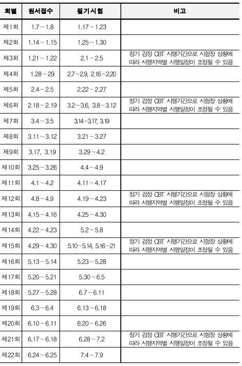 2021년 전과목 국가자격증 필기,실기 일정안내입니다
