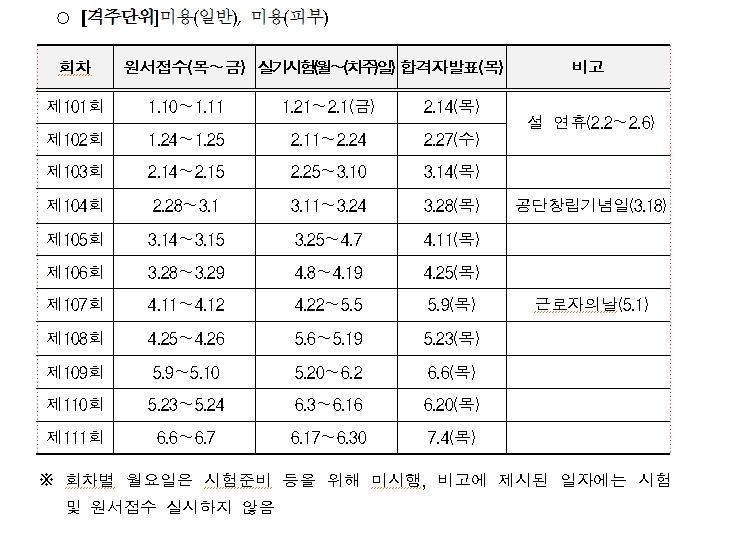 2019년 미용사 국가기술자격 상시시험일정 및 접수시간 알림