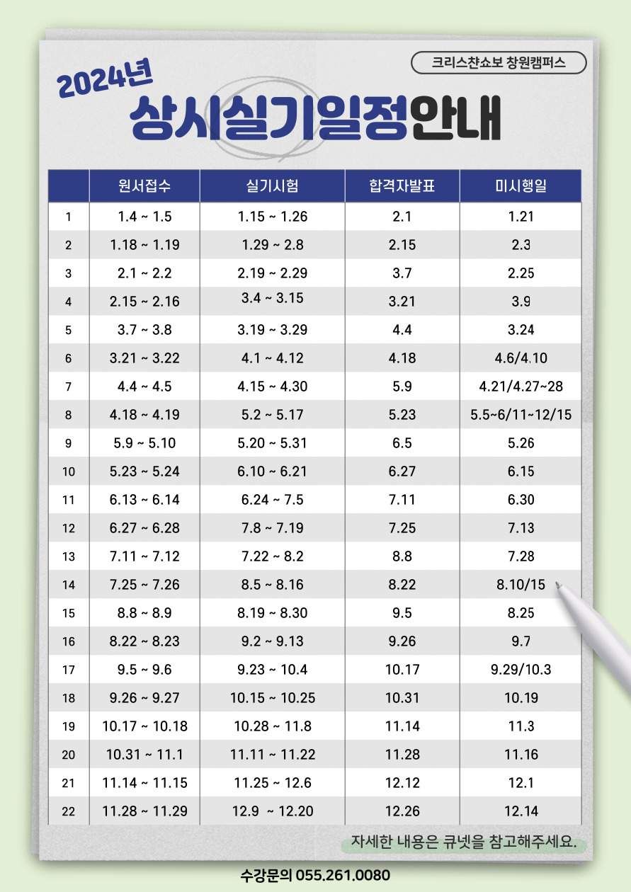 창원마산진해미용학원크리스챤쇼보에서 알려드리는 2024년도 상시필기.실기일정안내